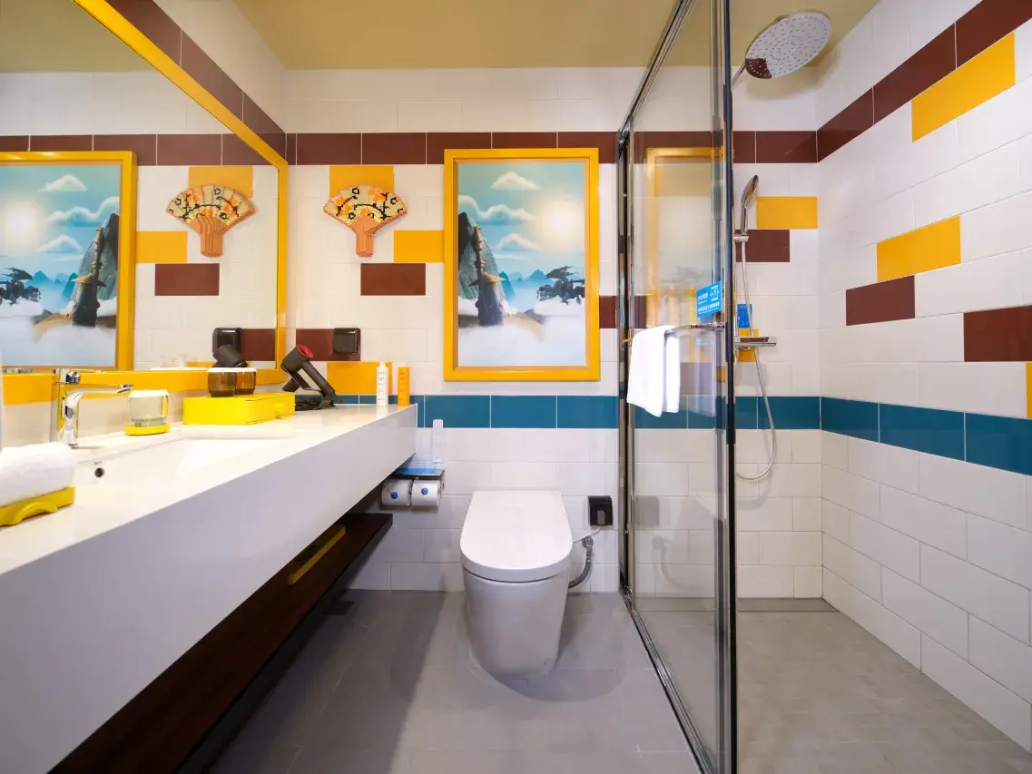 Situated on the 6th floor, this 31㎡ room is designed for true Spinjitzu masters. Immersed in the world of Kai, Lloyd, and the rest of the crew, the room features vibrant NINJAGO-themed wall hangings and decor that will spark the imagination of every young warrior. Whether you are planning your next mission or winding down after a day at the park, this room provides the perfect “dojo” for your family.